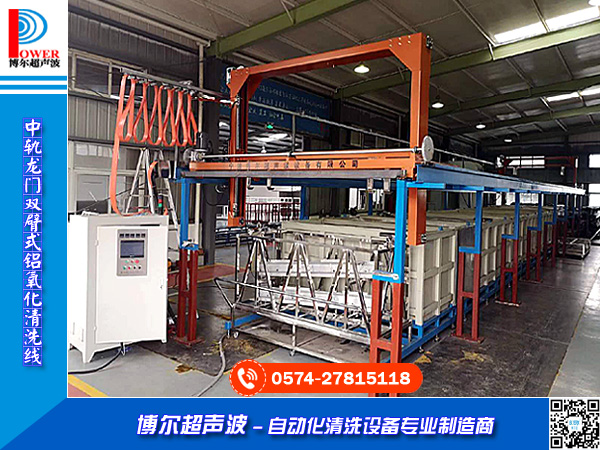 ②自動(dòng)磷化線(xiàn):根據(jù)客戶(hù)的工藝和產(chǎn)能要求確定設(shè)備的大小和配置,在槽體的兩側(cè)架設(shè)導(dǎo)軌,根據(jù)產(chǎn)量安裝1-2臺(tái)或多臺(tái)龍門(mén)式行車(chē),由PLC控制行車(chē)按照設(shè)定的工藝順序和時(shí)間對(duì)各槽體內(nèi)的吊具或者滾桶進(jìn)行轉(zhuǎn)換,溫度和液位均為自動(dòng)控制,在各槽邊和上下料位置安裝電機(jī),控制滾桶的旋轉(zhuǎn)。